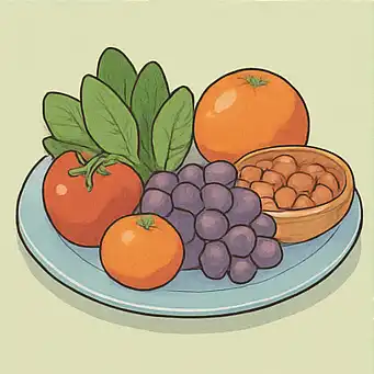 - 채소, 과일류: 식이섬유와 항산화 성분 풍부 (브로콜리, 토마토, 당근, 사과 등)